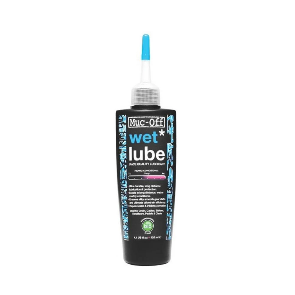 MUC-OFF Wet Lube er et effektivt kæde smøremiddel beregnet til våde og fugtige forhold. Wet lube er det foretrukne smøre middel i vinterhalvåret da olien hæfter bedre på kæden og beskytter mod rust.